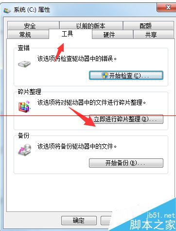 2、然后在上方的工具欄中找到工具選項,點擊進入,我們可以看到碎片整理功能項,點擊后方立即進行碎片整理。