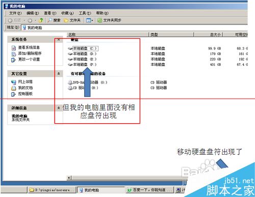 1、很多情況下,我們在桌面右下角能看到移動硬盤連接上了的標(biāo)志,但在我的電腦里面卻看不到盤符,如下圖所示。