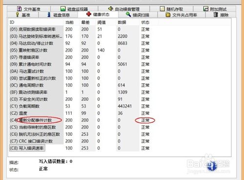3、一段時(shí)間后,完成修復(fù),此時(shí)打開 HD Tune軟件檢測(cè)其健康狀態(tài),則黃色警告消失。但實(shí)際的硬盤損壞還是有的,只是軟件檢測(cè)不出了而已。