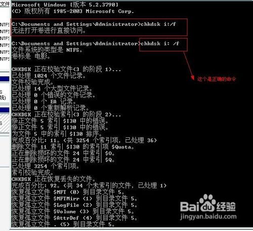 5、如果遇到該卷被使用,是不是重新檢查該卷,點Y回車
