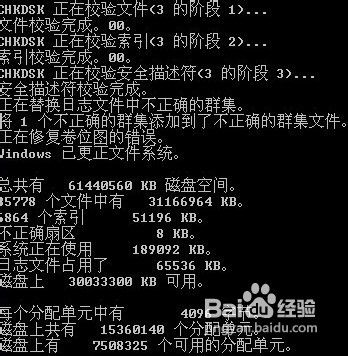 6、校驗完成,會出現(xiàn)恢復(fù)的文件和整個盤符的大小。