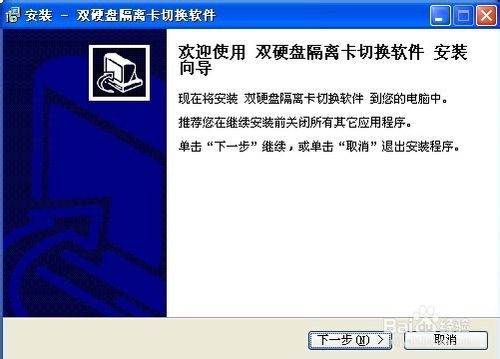 1.將安裝【雙硬盤隔離卡切換軟件】到系統(tǒng)上,彈出對話框,按下一步。