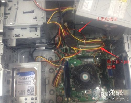 1.先接好卡的主供電線,然后插入pci插槽。上好螺絲。