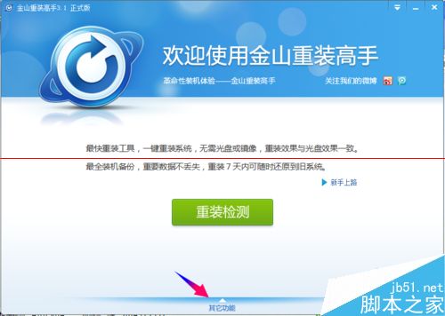 4、打開(kāi)重裝高手后,點(diǎn)擊下方的其他功能