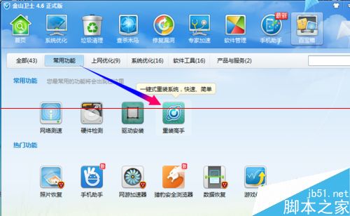 3、點(diǎn)擊常用工具里面的重裝高手工具