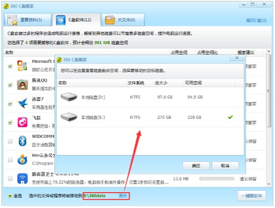 搬家后的文件默認被移動到一個閑置的硬盤中,文件夾命名為360data,用戶也可以根據自己的需求選擇目標磁盤。