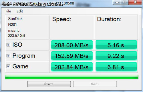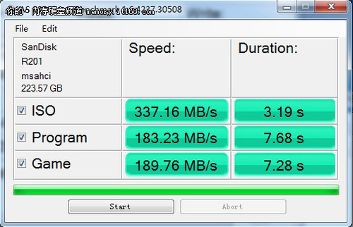 閃迪至尊極速系列240GB固態(tài)硬盤運用原生SATA3.0接口在AS SSD模擬文件拷貝測試中,ISO、程序和游戲三種不同文件形式下的拷貝速度分別為337.16MB/s、183.23MB/s、189.76MB/s。而運用SATA2.0接口的速度上和反應(yīng)時間上都和原生SATA3.0接口方面相差特別大。