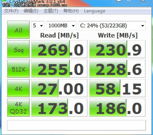 數(shù)據(jù)差距也很大 CrystalDiskMark對比