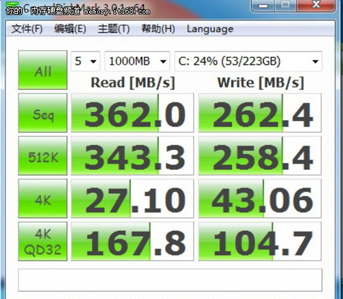 小編總結(jié):在固態(tài)硬盤中,同樣的產(chǎn)品、同樣的主控和顆粒,速度卻有好有差。相信通過這次的測試,很多人都能了解到,在不同接口上對于固態(tài)硬盤性能的影響有多大。如果沒有正確使用原生SATA3.0接口的話,固態(tài)硬盤的性能無法得到最大的體現(xiàn)。