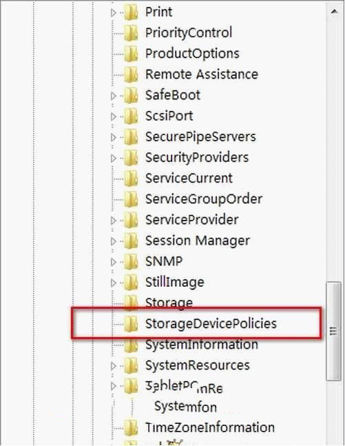 提示: 如果在注冊表中沒有找到“StorageDevicePolicies”注冊表項,可以自己用鼠標右鍵單擊“Control”注冊表項,新建一個名為 “StorageDevicePolicies”注冊表項,然后按照上述的方法創建WriteProtect的值即可。