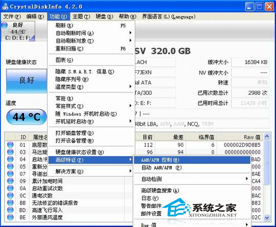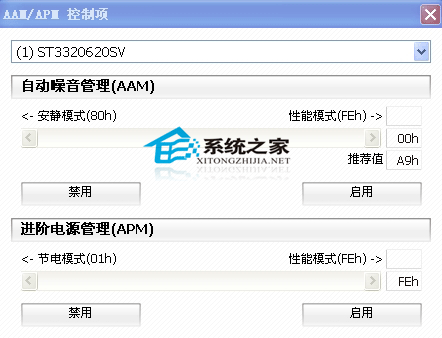 下面的是軟件的截圖(軟件不僅僅能提供硬盤的控制,還能快速檢測硬盤的健康狀態):