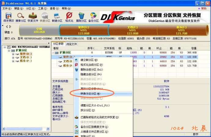 然后鼠標放到D盤上,選擇 轉換為主分區(M)選項,