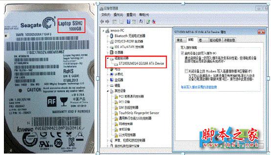 SSHD混合硬盤,其NAND閃存都是內置在硬盤中,對于操作系統來講,它是一塊硬盤。又因為NAND閃存為硬盤的熱數據進行緩存使用來提高訪問速度,由硬盤主控驅動器來自行控制,故用戶無法自由分配,在磁盤管理、設備管理器中無法看到內置SSD緩存的容量。如下圖一塊1TB的Seagate1TB的筆記本SSHD在磁盤管理器及設備管理器顯示的截圖如下: