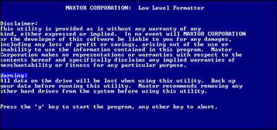 Maxtor出品過一個低格工具low.exe,這個軟件可以對Maxtor硬盤進行低格,其實這個程序可以適用于各種品牌各種型號的IDE硬盤。該軟件的操作相當簡單。