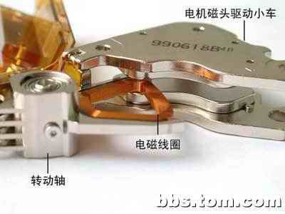 磁頭組件是硬盤中最精密的部件之一,它由讀寫磁頭、傳動手臂、傳動軸三部分組成。其中磁頭是硬盤中最重要的部分,一塊硬盤中的每張盤片都配有一個讀寫磁頭,而這些磁頭又連接在同一個傳動機構(gòu)上。磁頭加電后在高速旋轉(zhuǎn)的磁盤表面上0.1~0.3μm的地方移動,磁盤的數(shù)據(jù)。