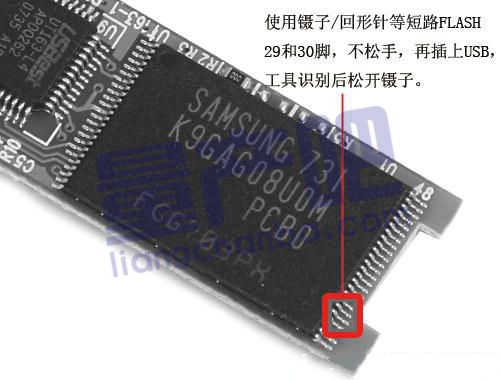 普通閃存盤可通過短接FLASH芯片的數據引腳,達到初始化目的