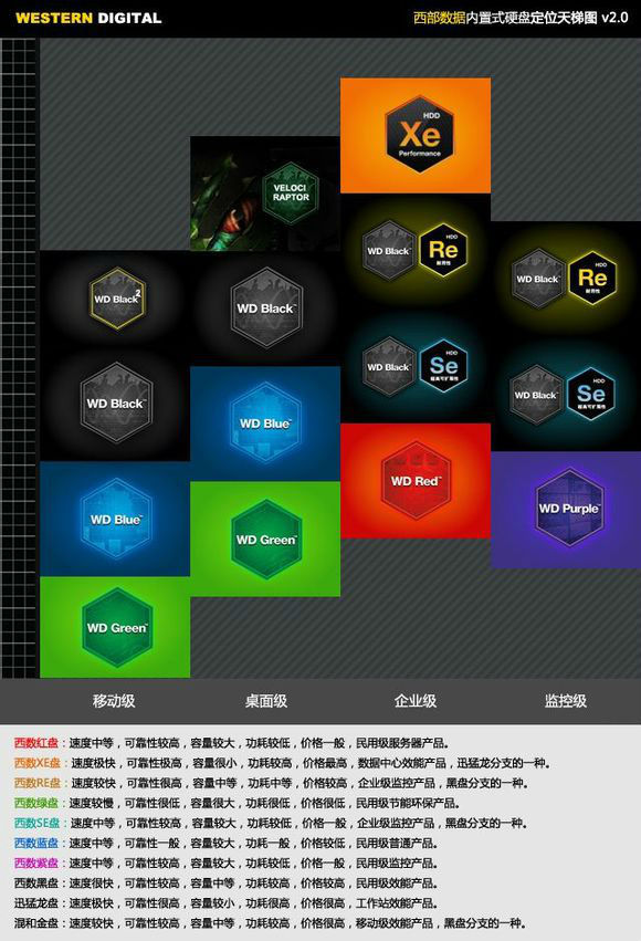 高性能,大緩存,速度快。代號:LS WD Caviar Black。主要適用于企業,吞吐量大的服務器,高性能計算應用,諸如多媒體視頻和相片編輯,高性能游戲機。