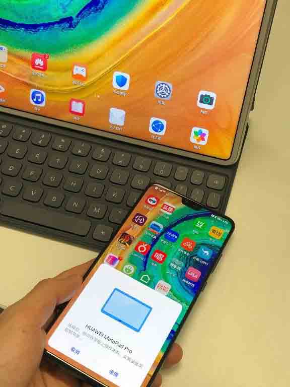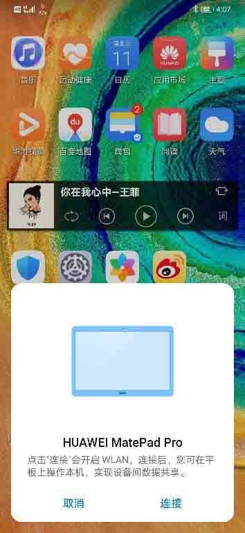 然后將手機靠近平板(大約20厘米以內),按照手機彈框提示點擊“連接”。