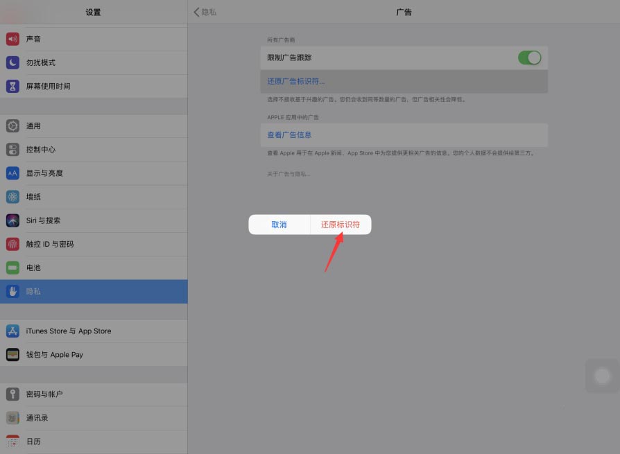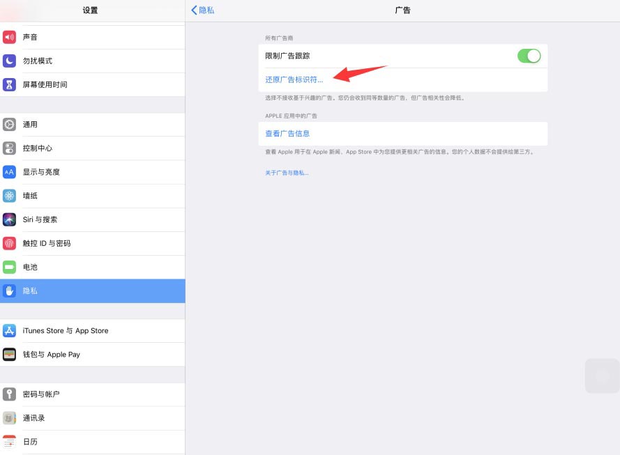 iPad Pro蘋果平板電腦還原廣告標識符在哪里?想要還原廣告標識符,下面我們就來看看詳細的操作步驟。