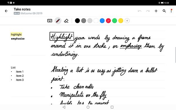 而自帶的Nebo應(yīng)用也非常好用,無論是數(shù)學(xué)公式還是草書書寫都可以完美的轉(zhuǎn)換成文本字體。在APP中我們可以進(jìn)行智能圖表編輯,雙擊兩下屏幕后,手畫的圖表自動(dòng)排列整齊,拉直線條,形成印刷體圖表。同時(shí),Nebo也是業(yè)界首款支持鍵盤、手寫筆混合輸入的筆跡類應(yīng)用,記錄更多美好。