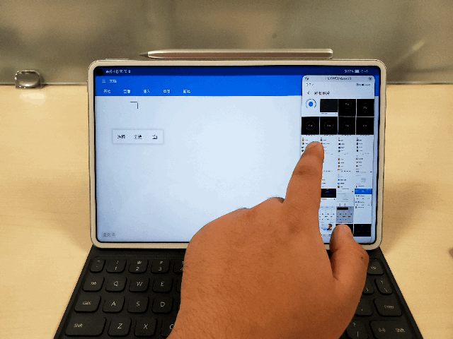 同時使用多屏協同功能后,手機和平板之間的數據源傳輸也變得更加便捷。連接后,HUAWEI MatePad Pro和手機可以實現雙向快速互傳圖片、文件和文本內容。當我寫稿需要配圖的時候,就可以直接將手機中的圖片直接拖拽至正在編輯的文檔。實現信息高效協同,無縫銜接。