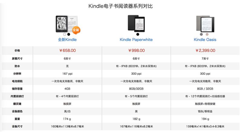 由此可見,多看電紙書對飚的是亞馬遜的入門款kindle,兩者價格相差了59元。多看電紙書的配置更高,電子墨水屏的ppi也更高。但是電紙書更重要的是資源,亞馬遜深耕電子書領域多年,其資源數量之龐大相信不用小編多說,這也是kindle的最大優勢之一。至于該如何選擇,就看各位的需求了。