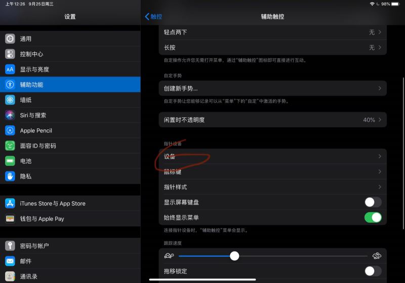 Apple 在設(shè)置頁(yè)面明確標(biāo)注了輔助觸控(鼠標(biāo))功能不支持通過(guò)藍(lán)牙使用妙控鼠標(biāo)和妙控板,我們來(lái)看看能否借助其他方法實(shí)現(xiàn)連接 iPad 與 Magic Mouse 2。