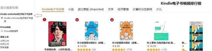 這么操作,理論上可以把所有Kindle Unlimited庫里的書都列出來,但是東西太多,已經(jīng)到達(dá)搜索的上限了,所以并不推薦,只適合于漫無目的閑逛,按人氣排序,隨便翻個(gè)幾十頁。