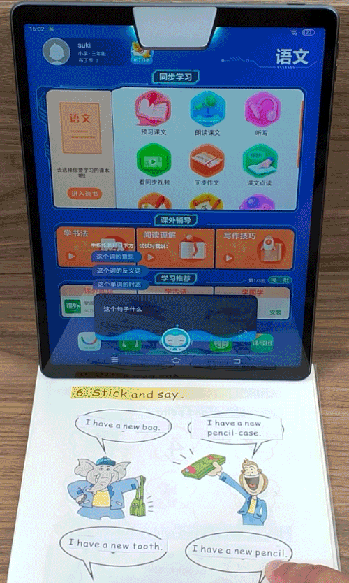 目前通過(guò)智慧眼,步步高家教機(jī)S5能提供搜題、搜字詞句、搜例文、搜單詞、聽(tīng)寫(xiě)等AI輔導(dǎo)功能。這里先從指尖查單詞模式,看看點(diǎn)問(wèn)的識(shí)別速度、精度。