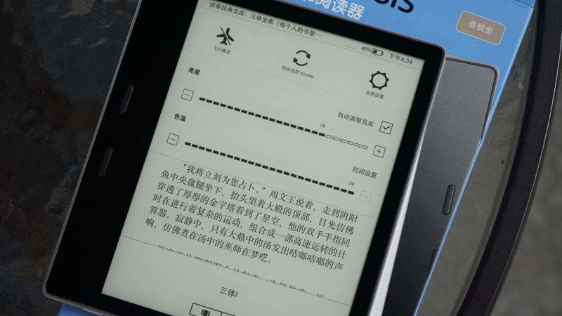 暖燈模式下,Kindle Oasis的屏幕看起來和開了護眼模式的手機很像,理論上在暗光模式下對人眼更加友好。
