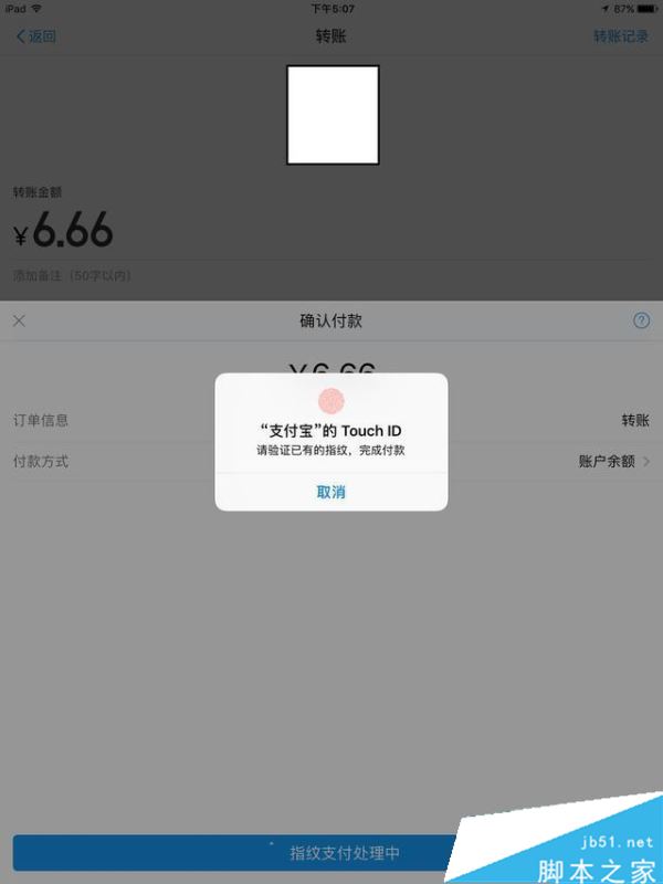 然后來試試支付指紋。