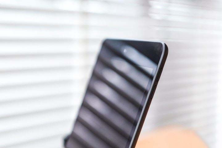 底部相比上一代基本沒啥變化,側面6.1mm薄,WiFi版的重量是300g,WiFi+4G版是308g,不到1斤的重量,女生單手拿毫不費力,外出攜帶絕對很方便!如果你很在意邊框的話,可以和我一樣選擇“深空灰”的,因為這次是全貼合屏幕,在熄屏的時候有一定隱藏邊框的作用。