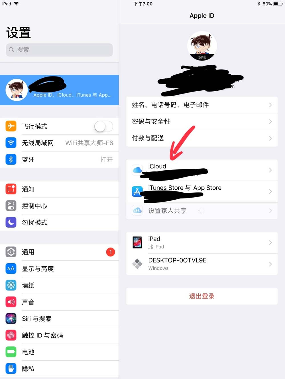 3、點擊個人選項后,我們就可以看到相關信息了,點擊第二欄的icloud。