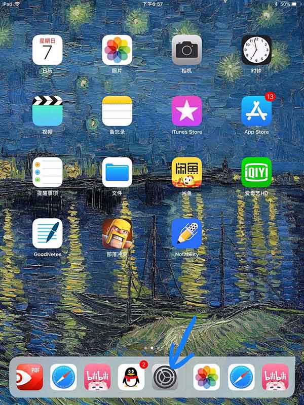 1、我們先進入ipad的設置,點擊進入,如下圖所示。