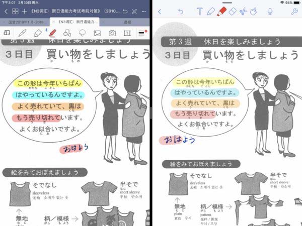 左側(cè)GoodNotes,右側(cè)Notability,熒光筆對(duì)比