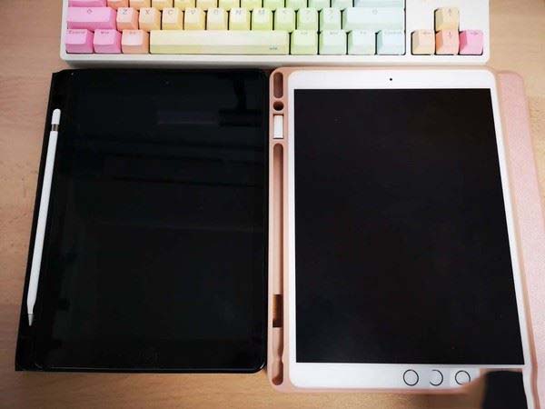 總的來(lái)說(shuō),ipad air3 比 ipad 2018輕了一點(diǎn)點(diǎn)(大概13g的樣子),也薄了一點(diǎn)點(diǎn)(大概1.4mm),但是在貼膜和上保護(hù)套之后,差距可以徹底無(wú)視。