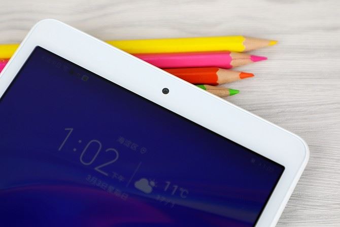 上面邊框中間是800萬前置攝像頭,以及充電狀態指示燈。除了可以用于視頻聊天、自拍等,這款平板還支持人臉識別,抬起喚醒解鎖屏幕,快速便捷,方便易用。