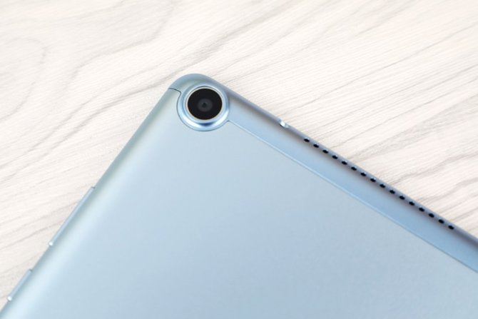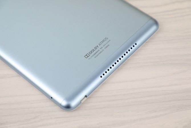 機身側邊框采用弧形設計,視覺上起到了收身的作用。背面三段式設計,配色為冰川藍,但是上下框的色彩較深、中間略淺。背面左上側是后置800萬攝像頭,自動對焦,F2.0 光圈,可以用于日常的拍照,此外這款平板還具有拍照識物功能,我們將在后面進行介紹。