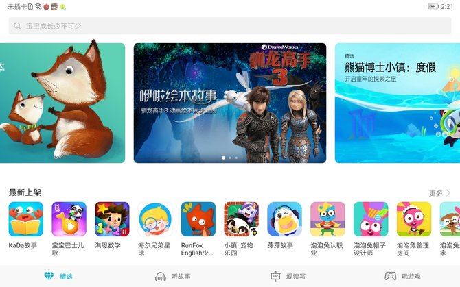 兒童樂園是孩子專屬的領域,家長可以為孩子設置使用時間、獨立的進入密碼,當啟動兒童模式后,孩子可以在這里學習、游戲,還有兒童專屬的應用下載商店,一整套的管理方式讓孩子玩平板更放心,更安全。