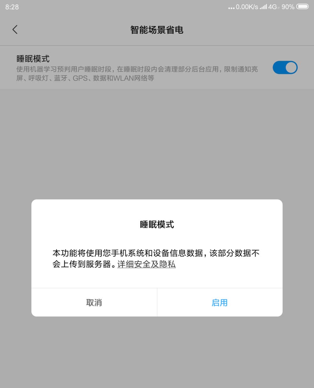 6、啟用睡眠模式之后,在我們睡眠的時間段就會關閉多余的功能,這樣可以節省電量