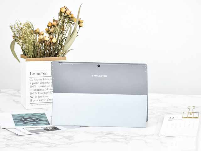 如果問我對臺電X6 Pro的第一印象是什么,我會說:非常像Suface Pro。這款平板的設計和配色都非常像Suface筆記本。它同樣采用了鋁合金的機身背面,并加入了Suface相同的背部支架設計。
