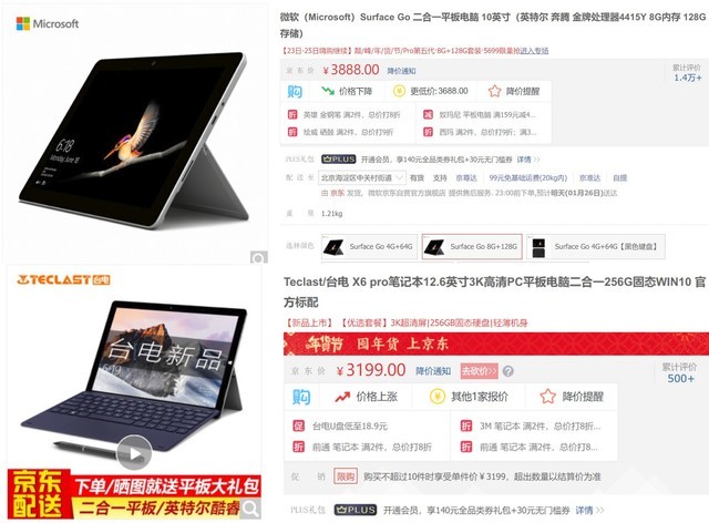 要知道,配置類似,性能還遠弱于臺電X6 Pro的Suface Go在比它貴689元。這么看來,這款臺電平板價格真的已經十分良心了。