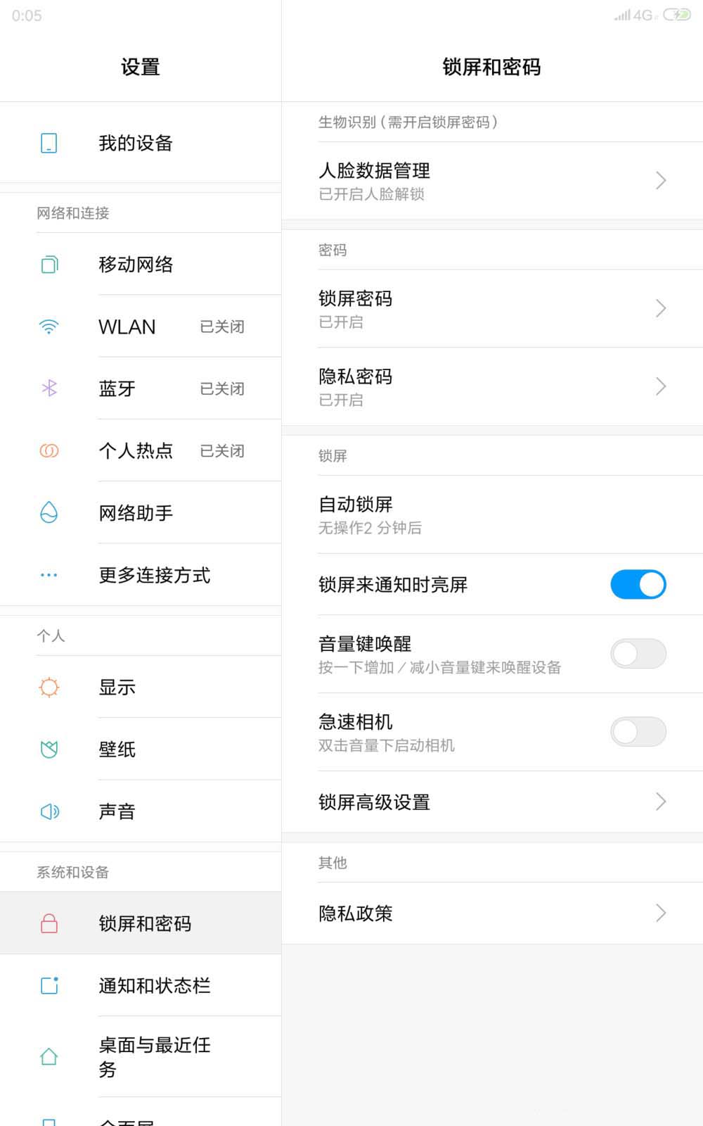 2、在頁面左側我們找到密碼和鎖屏,然后點擊打開
