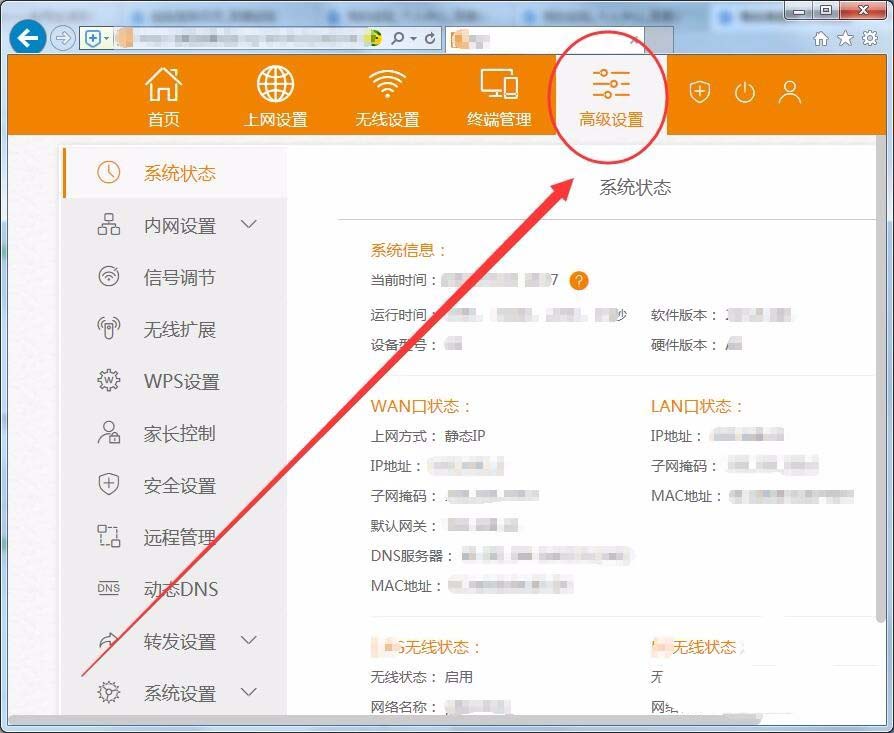 1、在路由器設(shè)置界面中,選擇高級(jí)設(shè)置選項(xiàng)。