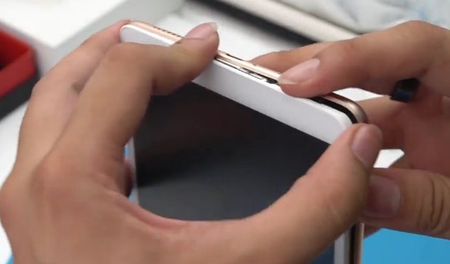 對于沒有吸盤和撥片工具的用戶,也可以用手徒手分離后蓋,不過難度比較大,要是能借助撥片會更方便一些。具體操作是,首先使用指甲找到一個缺口,然后劃開,如下圖所示。