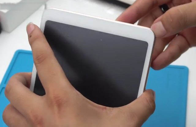 第三步:分離后蓋。小米平板4金屬后蓋采用卡扣固定,拆卸難度相對并不是很大,想要輕松打開后蓋可以借助吸盤和撥片來拆卸。方法是,使用吸盤吸屏幕底部,待出現(xiàn)縫隙后,就可以使用塑料撥片,沿著縫隙四周劃開,即可打開后蓋。