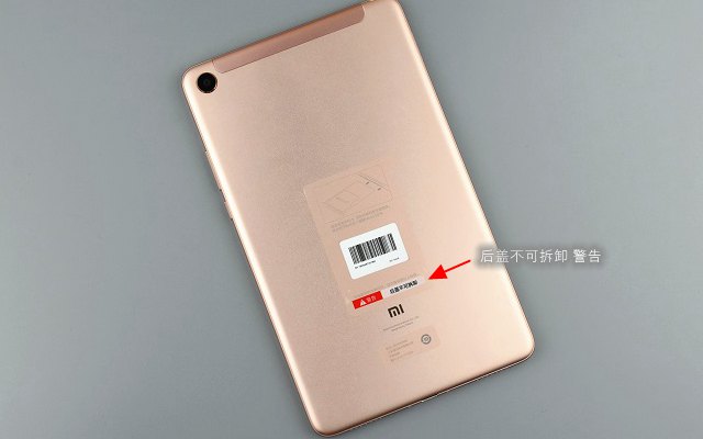 小米平板4后蓋怎么打開?首先,小米平板4是不支持打開后蓋的,這在我們開箱后,在平板背面可以看到一個“后蓋不可拆卸”的警告。如果自行拆卸后蓋,可能會面臨失去免費一年保修服務(wù)。