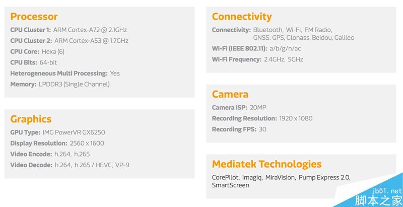 SoC:聯發科 MT8176(CPU 為 2 * A72 + 4 * A53,GPU 為 PowerVR GX6250,28nm HPM 制程)