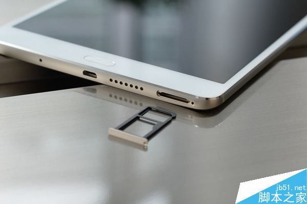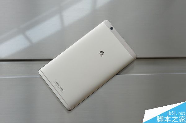 華為平板 M3的外觀仍然是傳承了家族式設計,三段機身,使用無縫納米注塑技術,采用3D軌跡鉆切工藝。整體比較輕薄,僅310g,4.6mm厚度。