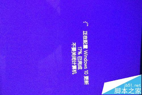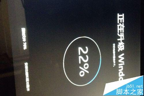 3、自動(dòng)配置后就顯示正在升級(jí)win10的圖案,這個(gè)過(guò)程大概耗時(shí)半個(gè)小時(shí),在這個(gè)過(guò)程中會(huì)重啟多次(這個(gè)情況屬于正常情況)。